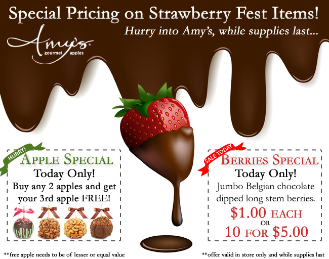 Special pricing on Strawberry Fest Items! But hurry, this offer is only valid for a limited time while supplies last.